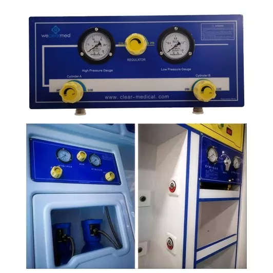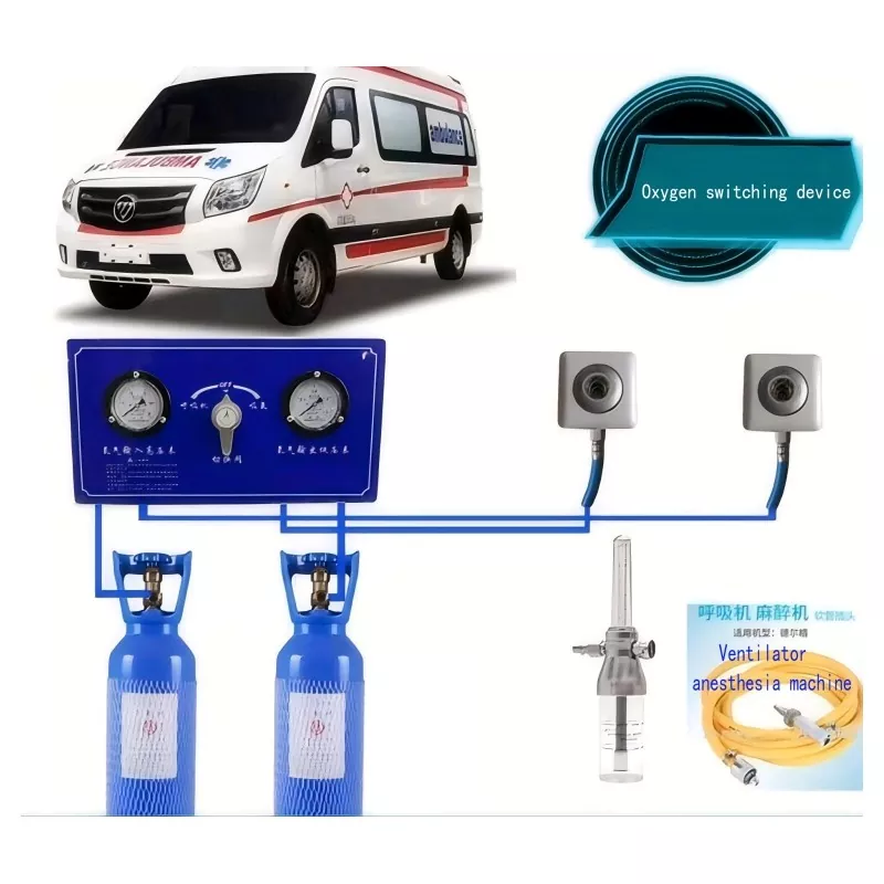 Esta unidade do coletor de gás médico de ambulância é adequado para ambulâncias com alto consumo de oxigênio. Ele insere oxigênio de alta pressão engarrafada através da mangueira de metal no pipeline principal do painel de controle, e o oxigênio de alta pressão é entregue ao terminal de oxigênio através do pipeline de baixa pressão após a despressurização para ser usado como fonte de oxigênio para uso de primeiros socorros. O princípio de trabalho é descomprimir o oxigênio de alta pressão em baixa pressão e entregá -lo ao terminal de oxigênio através do respectivo pipeline, de modo a fornecer a porta do terminal de oxigênio e a porta do ventilador. O painel de controle pode ser conectado a dois ou mais cilindros de oxigênio ao mesmo tempo para descomprimir o oxigênio de alta pressão engarrafada a uma certa pressão, que é um tipo de equipamento para o suprimento de gás centralizado. O painel de controle consiste em uma tubulação de alta pressão feita de mangueira de metal, que é conectada aos cilindros de oxigênio através de roscas G5/8. Cada cilindro de oxigênio é conectado ao painel de controle com uma válvula de comutação de alta pressão correspondente, que controla a respectiva tubulação de alta pressão. O pipeline de alta pressão que conecta cada cilindro de oxigênio na extremidade traseira da válvula de comutação é conectado um ao outro, e o coletor está equipado com um conector Tee no meio do coletor para conectar o medidor de alta pressão, o regulador e o tubo de alta pressão em série. O medidor de alta pressão é usado para monitorar a pressão de oxigênio no tubo de alta pressão do painel de controle, e o regulador é usado para regular o oxigênio de alta pressão para a pressão necessária e depois a saída para o terminal de baixa pressão. A extremidade de baixa pressão é conectada ao terminal de oxigênio, válvula de segurança e bitola de baixa pressão, que é usada para monitorar a pressão na tubulação de baixa pressão do painel de controle, enquanto a válvula de segurança esgota automaticamente o gás quando a pressão de saída é maior que a pressão de projeto, de modo a garantir a segurança e a estabilidade da pressão de saída. Este sistema é adequado para qualquer local onde a comutação de convergência de gás é necessária para monitorar a pressão e a quantidade residual de gás, como: hospitais, ambulâncias, petróleo, postos de gasolina de petróleo liquefeitos e outras empresas e instituições industriais e de mineração.