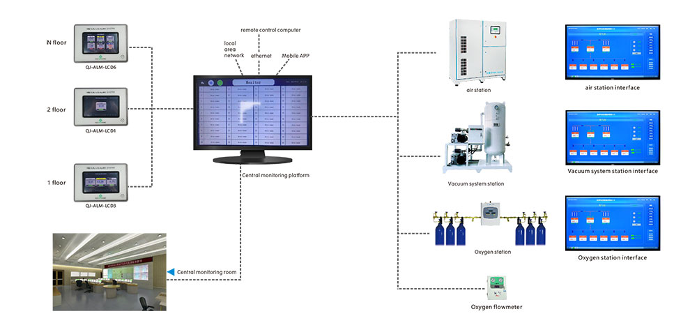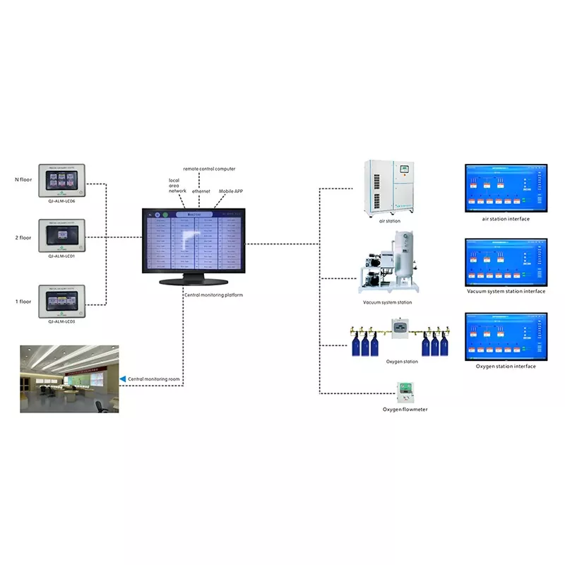 6. Depois que o sistema de monitoramento centralizado está conectado à Ethernet, a operação remota e o compartilhamento de rede podem ser realizadas. A interface RS485 padrão fornece todos os sinais de alarme em tempo real e saída de dados de pressão